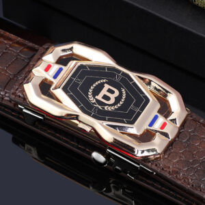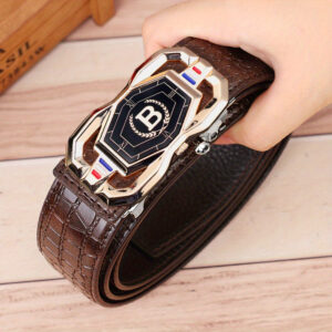Fashionable Genuine Leather Cowhide Belt For Men, With An Automatic Buckle, Suitable For Young And Middle-aged Gentlemen