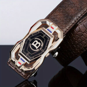 Men’s Leather Belt With Automatic Buckle, Two-Layer Cowhide, Simple And Elegant Design For Business And Casual Occasions