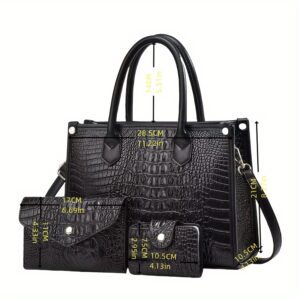 6 Pcs Allover Printed Boston Handbag & Purse Set, PU Leather Zipper Shoulder Bag, Multi-functional Leisure Commuter Bag