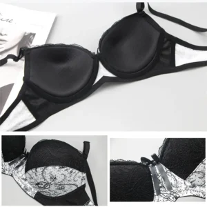 Women’s Satin Push Up Bra Pantie Sexy Sheer Lace Underwear Set